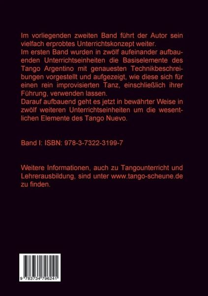 Der vorliegende zweite Band des Lehrbuchs für den Tango Argentino setzt den im ersten Band aufgezeigten Lehrweg fort und behandelt allgemeine Fragen zu diesem Tanz.Wurden im ersten Band vornehmlich die Grundelemente des Tango Argentino behandelt, geht es nun um alle wesentlichen Erscheinungen des Tango Nuevo.Der Autor führt in weiteren sechzehn Unterrichtseinheiten seinen bewährten, auf allen Altersstufen erprobten methodisch-didaktischen Lern- und Lehrweg weiter. Dieser ermöglicht das Erlernen des Tango Argentino ohne Umwege bis hin zum Bühnentango. Egon Wenderoth bringt dabei die endlosen Möglichkeiten dieses Tanzes in ein logisches, gut erlernbares System. So wird jegliches konventionelle Auswendiglernen von Schrittkombinationen überflüssig. Vielmehr wird von der ersten Stunde an das Improvisationsvermögen geschult, dem dieser Tanz alle Türen öffnet.Jedes neue Tanzelement wird bei seiner Einführung hinsichtlich Technik und Führung genauestens beschrieben und durch Abbildungen verdeutlicht.