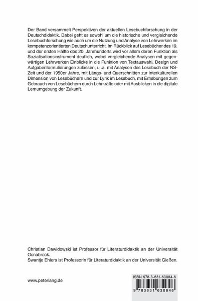 Inhalt: Jana Mikota: Jüdische Lesebücher und Fibeln im 19. Jahrhundert. Eine Bestandesaufnahme - Hans- Joachim Jakob: Ein Gedicht richtig aufsagen. Die Anweisungen für die fachgerechte Rezitation in Deklamationslehrbüchern für die Schule im frühen 19. Jahrhundert - Swantje Ehlers: Politische Lyrik im Lesebuch der NS-Zeit - Julia Heuer: «Ein Spiegel des Lebens»? Ergänzungen und Korrekturen zu Lesebuch und Literaturdidaktik in den 1950er Jahren - Christian Dawidowski: Darstellungen des Fremden in Lesebüchern des 20. Jahrhunderts. Eine Typologie - Anna Rebecca Hoffmann: Lyrik im Schulbuch der 1970er und 2000er Jahre im Vergleich - Kerstin Metz/Thorsten Bohl/Henriette Hoppe/Marc Kleinknecht/Uwe Maier: Zum Einsatz eines allgemeindidaktischen Kategoriensystems zur Analyse von Aufgaben aus Deutschlehrwerken - Swantje Rehfeld: Aufgaben als Qualitätsindikatoren medienintegrativer Lesebücher - Henriette Hoppe: Aufgaben in Unterrichtswerken: Tendenzen im Umgang mit Jugendbüchern in Abhängigkeit von Rahmenplänen und Standards - Anja Ballis/Désirée-Kathrin Gaebert: Lernmedien und Aufgabenformate im Literaturunterricht der Sekundarstufe I - Ausgewählte Ergebnisse eines Forschungsprojektes - Christian Fischer: Lesebuch 2.0 - Skizze eines digitalen Lernmediums für den Deutschunterricht.