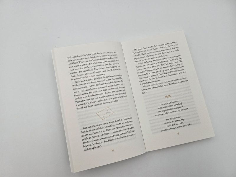Es sind die ersten Stunden des neuen Jahres, als die 42-jährige Mina die tanzenden Schneeflocken vor ihrem Fenster beobachtet. Nachdem ihre Tochter ausgezogen ist, könnte sie die freie Zeit genießen und mehr für sich tun. Stattdessen fühlt sie sich einsam und weiß nicht, was sie will. Ihr Bauchgefühl schweigt. Und dann stirbt auch noch ihre geliebte Großmutter Aruna. Was wie ein Ende scheint, wird auf wundervolle Weise zu einem Neubeginn, als ein geheimnisvoller Brief bei ihr eintrudelt, der nur von ihrer Oma sein kann. Für Mina beginnt eine transformative Reise, ein Jahr, das sie für immer verändert - erfüllt von den Farben des Lichts, der Kraft der Natur und der Weisheit der inneren Stimme.