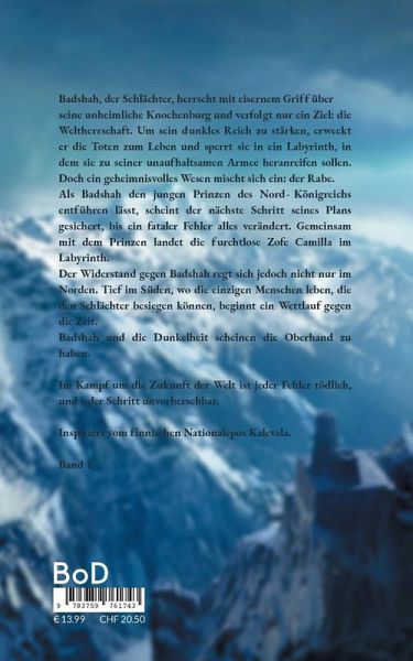 Band 1 - Tummakyläs Ungeheuer: Nur eine Blutsverwandte des grausamen Königs Badshah kann ihn endgültig besiegen. Dieses Gesetz unterliegt dem Regelwerk eines Zaubers so alt wie die Existenz von Badshahs düsterem Gemüt. Um dies zu verhindern, will er Besagte nicht nur töten, sondern gleich auf Nummer sicher gehen und seine Macht durch die furchteinflößendste Armee aller Zeiten verteidigen. Deshalb holt er in einer rabenschwarzen Nacht die toten Helden vergangener Tage aus ihren Gräbern und sperrt sie in ein auswegloses, tristes Labyrinth, in dem Freude ein Fremdwort zu sein scheint. Dort sollen sie in der Finsternis wie ein Apfel in der Sonne zu seinen Schattenkriegern heranreifen. Der Plan scheint lückenlos, sein Sieg gesichert. Dann taucht auch noch ein untoter Rabe auf. Was hat dieses mysteriöse Wesen mit alldem zu schaffen? Und kann es einem Mädchen gelingen, das doch eigentlich dazu bestimmt ist, ihr Leben in demütiger Dienerschaft eines Königs zu verbringen, Badshah einen Strich durch die Rechnung zu machen? Inspiriert vom finnischen Nationalepos Kalevala.