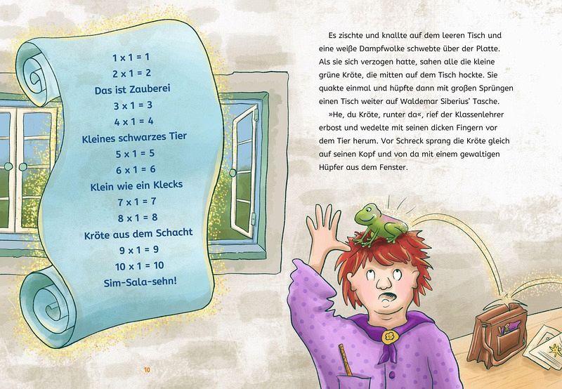 'Das vergnügliche Durcheinander ist ein großer Lesespaß und lädt in jedem Kapitel zum Mitraten und Mitrechnen ein' Clarissa und ihr Zwillingsbruder Marlon besuchen die Zauberschule Simbalablitz. Eigentlich ist der Unterricht dort schon aufregend genug - bis sie eines Tages in der Bibliothek eine geheimnisvolle Steintafel entdecken: das magische Mal. Neugierig lösen sie die spannenden Mathe-Rätsel der Tafel und setzen damit ungewollt eine Kette magischer Chaos-Zauber in Gang: Plötzlich wimmelt es in der Schule von Knallfröschen, Fledermäusen, Minischweinen und sogar kleine Drachen toben durch die Schule! Während das Chaos wächst, müssen Clarissa und Marlon zusammen mit ihrem Freund Elmar herausfinden, was es mit dem magischen Mal auf sich hat - und wie sie ihre Schule retten können, bevor sie geschlossen wird. Die Zeit drängt!