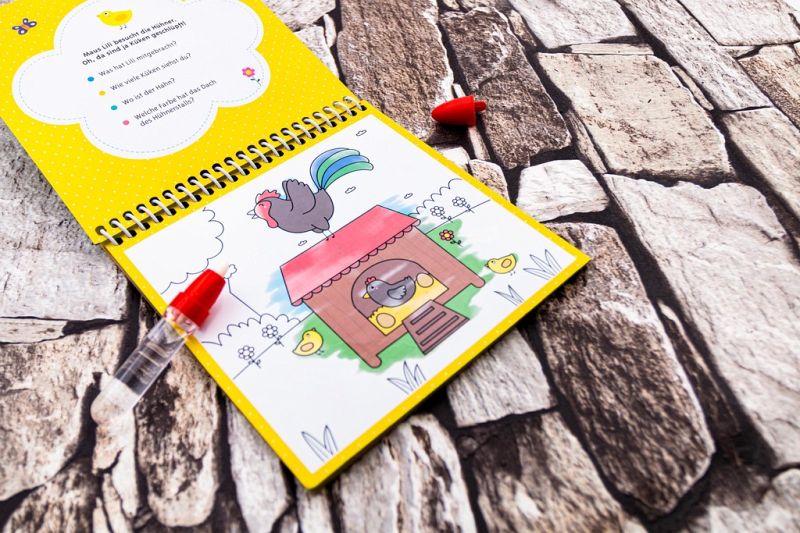Wenn du den Stift aufdrehst und Wasser einfüllst, beginnt die abenteuerliche Reise mit Lili, der kleinen Maus: Fährst du mit dem Zaubermalstift über die Bilder, erscheinen wunderschöne Farben und allerlei Bauernhoftiere. Und wenn die Seiten wieder getrocknet sind, kannst du die Magie erneut erleben!