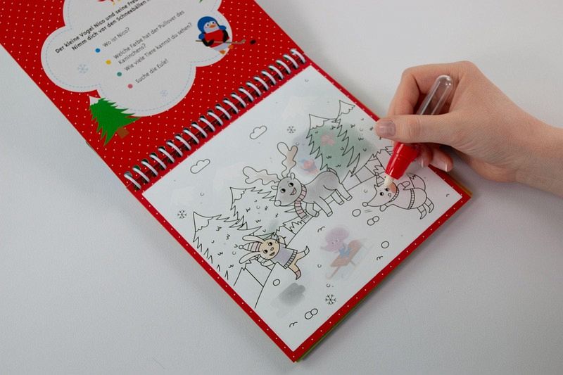 Stift aufdrehen, Wasser einfüllen und los geht's! Fahren Kinder mit dem Zaubermalstift über die Bilder, erscheinen wunderschöne Farben und allerlei Bauernhoftiere. Und wenn die Seiten wieder getrocknet sind, kann der Zauber erneut beginnen!