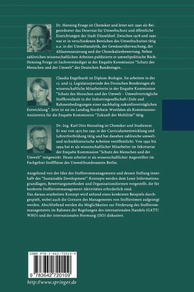 1 Stoffstrommanagement: Die Idee und ihre Entwicklung.- 1.1 Einführung.- 1.2 Stoffstrommanagement - Ursachen und Ideen.- 1.3 Von der Problembeschreibung zur Problemlösung: Konzepte und Wege Eines Modernen Umwelt- Managements für Produkte.- 2 Grundlagen des Managements von Stoffströmen.- 2.1 Einführung.- 2.2 Ziele, Anlässe und Formen des Stoffstrommanagements.- 2.3 Umweltwirkungen von Stoffströmen - Umweltziele.- 2.4 Stoffstromanalysen.- 2.5 Stoffstromanalyse - Regionaler Ansatz.- 2.6 Nationale Material- und Energieflußrechnungen.- 2.7 Stoffstrombewertung.- 2.8 Kooperationen, Organisationsformen und Akteure.- 2.9 Stoffstrommanagement für Cadmium.- 3 Stoffstrommanagement im Bereich Textilien.- 3.1 Anlässe und Ziele für ein Stoffstrommanagement in der textilen Kette.- 3.2 Stoffstromanalysen in der Textilen Kette.- 3.3 Bewertungsmethoden zur Festlegung von Umwelt- und Sozialstandards für Textilien.- 3.4 Informationsflüsse in der Textilen Kette.- 3.5 Möglichkeiten und Grenzen für ein Stoffstrommanagement in der Textilen Kette.- 4 Förderung des Managements von Stoffströmen.- 4.1 Einführung.- 4.2 Einsatz Ökonomischer Steuerungsinstrumente.- 4.3 Rahmen für Proaktives Handeln der Unternehmen.- 4.4 Entwicklung des Stoffrechts.- 4.5 Internationale Aspekte des Managements von Stoffströmen.- 5 Verantwortliches Handeln.- 5.1 Ethische Grundlagen Eines Verantwortlichen Umgangs Mit Stoffströmen.- 5.2 Verantwortung für Produkt und Umwelt: Bestandteil Einer Zukunftsfähigen Unternehmensstruktur.- 5.3 Produktverantwortung in der Chemischen Industrie.- 5.4 Produktverantwortung ist Mehr als Kreislaufwirtschaft.- 5.5 Kooperation mit Kunden und Lieferanten zur Erstellung Ökologischer Produktinformationen.- 5.6 Die Rolle des Handels im Management von Stoffströmen.- 5.7Stoffstrommanagement und Innovation.- 6 Auf Dem Weg.- Autorenverzeichnis.- Stichwortverzeichnis.