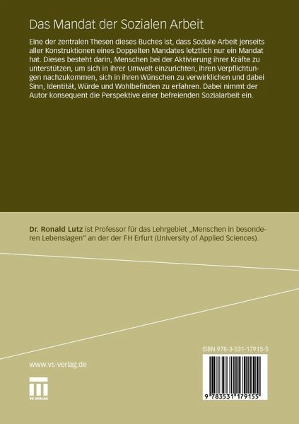 Eine der zentralen Thesen dieses Buches ist, dass Soziale Arbeit jenseits aller Konstruktionen eines Doppelten Mandates letztlich nur ein Mandat hat. Dieses besteht darin, Menschen bei der Aktivierung ihrer Kräfte zu unterstützen, um sich in ihrer Umwelt einzurichten, ihren Verpflichtungen nachzukommen, sich in ihren Wünschen zu verwirklichen und dabei Sinn, Identität, Würde und Wohlbefinden zu erfahren. Dabei nimmt der Autor konsequent die Perspektive einer befreienden Sozialarbeit ein.