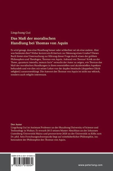 Es wird gesagt, dass eine Handlung besser oder schlechter sei als eine andere. Aber was bedeutet dies? Woher kommt ein Kriterium zur Messung eines Grades? Dieses Buch bietet eine Untersuchung zur Klärung dieser Frage durch einen der größten Philosophen und Theologen, Thomas von Aquin. Anhand von Thomas' Kritik an der These "quantum intendis, tantum facis" versucht der Autor zu zeigen, wie Thomas das Maß der moralischen Handlungen in ihren essentiellen und akzidentiellen Aspekten behandelt und wie dies mit seiner Lehre von der duplex beatitudo (doppelten Glückseligkeit) zusammenhängt. Die Antwort des Thomas von Aquin ist nicht nur ethisch, sondern auch religiös interessant.