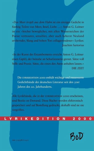 "Es ist ein einziges Gedicht in fünfzig Teilen von Meer, Insel, Liebe - von wandelbaren Dingen, die unseren Durst unterweisen", schreibt Joachim Sartorius in seinem Vorwort. Sartorius schätzt Leitner "als höchst beweglichen, mit allen Wasserzeichen der Poesie vertrauten, sensiblen, aber auch beherzt Neuland erobernden, Slang und hohen Ton collagierenden" Lyriker.