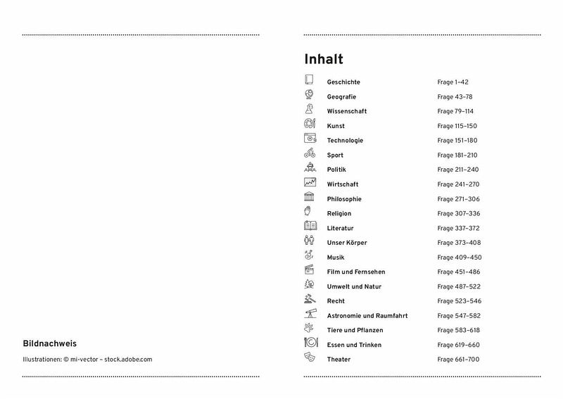 - 700 knifflige Quizfragen aus 20 spannenden Themenbereichen von Geschichte über Wissenschaft bis Pop-Kultur