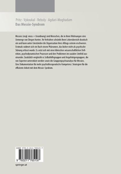 Abgeleitet vom englischen Wort mess (= Unordnung) werden jene Menschen Messies genannt, die ihren Lebensbereich drastisch einschränken, indem sie zum Beispiel ihre Wohnungen mit Dingen überfüllen und unter Umständen sich auch die Organisation des Alltagslebens oft extrem erschweren. Da dieses Leiden nicht als psychische Störung erfasst wurde, ergibt sich derzeit ein Mangel an psychotherapeutischer Kompetenzentwicklung. Dieses Buch widmet sich erstmals dem Phänomen und dokumentiert und bearbeitet diese psychische Entität. Die klinische und wissenschaftliche Definition, die dahinter liegenden psychodynamischen Prozesse und weitere Aspekte, wie die Auseinandersetzung mit Angehörigen werden ebenso beleuchtet, wie die Wirkung von Selbsthilfegruppen, die expertenunterstützte Angehörigengruppe und Gruppenpsychoanalyse für Messies. Ziel ist es, dem Messie-Phänomen näher zu kommen, um es besser zu verstehen und Konsequenzen für die effiziente psychotherapeutische Arbeit ableiten zu können.