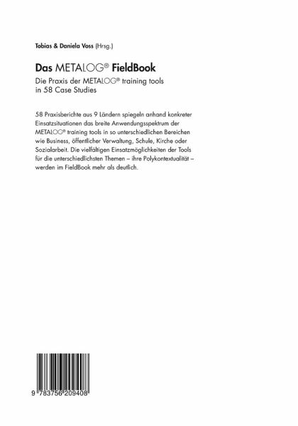 58 Praxisberichte aus 9 Ländern spiegeln anhand konkreter Einsatzsituationen das breite Anwendungsspektrum der METALOG training tools in so unterschiedlichen Bereichen wie Business, öffentlicher Verwaltung, Schule, Kirche oder Sozialarbeit. Die vielfältigen Einsatzmöglichkeiten der Toolsfür die unterschiedlichsten Themen - ihre Polykontextualität - werden im FieldBook mehr als deutlich.