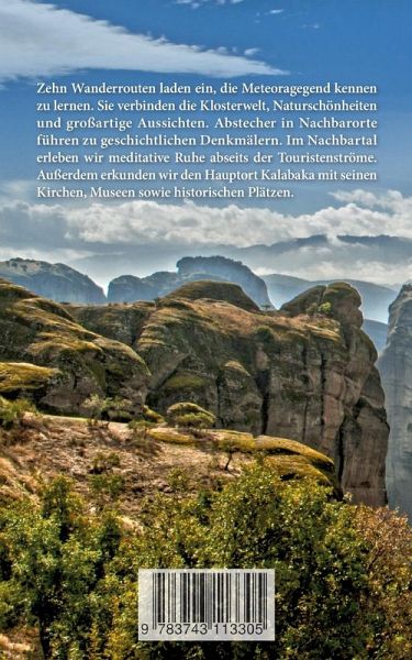 Auf zehn Routen wird die Region der weltberühmten Meteoraklöster erwandert. Jede Tour dauert ca. 3 bis 4 Stunden und ist zu jeder Jahreszeit attraktiv. Kletterfähigkeiten sind nicht erforderlich, lediglich gutes Schuhwerk und ein wenig Orientierungssinn. Die Wanderungen führen zu allen sechs aktiven Klöstern, die besichtigt werden können sowie zu allen übrigen Sehenswürdigkeiten wie Felsenklöster, Mönchsgefängnis, Drachenhöhle oder Spindel, einem außergewöhnlichen Felsen. Eine Tour führt in die Nachbardörfer jenseits des Pinios mit einer Brücke aus der Osmanenzeit und einem verfallenen Kastro, eine weitere ins Nachbartal mit einer bizarren Felsformation und grandiosen Ausblicken. Auch die Ortschaften Kalabaka und Kastraki werden ausgiebig erkundet. Geologische und geschichtliche Daten sowie Übersichtskarten zu allen Touren runden den Wanderführer ab.