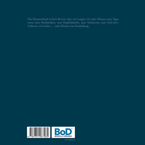 Das Minutenbuch ist kein Brevier, eher ein Longier: Zu jeder Minute eines Tages etwas zum Nachdenken, zum Kopfschütteln, zum Amüsieren, zum Sich-drin-Verlieren, ein Gebet ... - jede Minute eine Entdeckung.