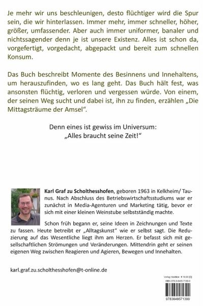 Das Buch beschreibt Momente des Besinnens und Innehaltens, um herauszufinden wo es lang geht. Auch dieses Buch hält fest, was ansonsten flüchtig verloren und vergessen würde.