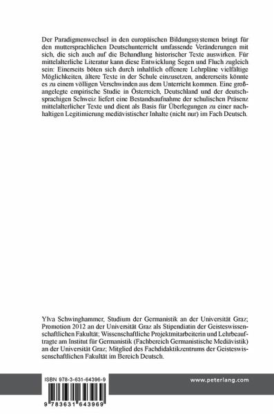 Der Paradigmenwechsel in den europäischen Bildungssystemen bringt für den muttersprachlichen Deutschunterricht umfassende Veränderungen mit sich, die sich auch auf die Behandlung historischer Texte auswirken. Für mittelalterliche Literatur kann diese Entwicklung Segen und Fluch zugleich sein: Einerseits böten sich durch inhaltlich offenere Lehrpläne vielfältige Möglichkeiten, ältere Texte in der Schule einzusetzen, andererseits könnte es zu einem völligen Verschwinden aus dem Unterricht kommen. Eine großangelegte empirische Studie in Österreich, Deutschland und der deutschsprachigen Schweiz liefert eine Bestandsaufnahme der schulischen Präsenz mittelalterlicher Texte und dient als Basis für Überlegungen zu einer nachhaltigen Legitimierung mediävistischer Inhalte (nicht nur) im Fach Deutsch.