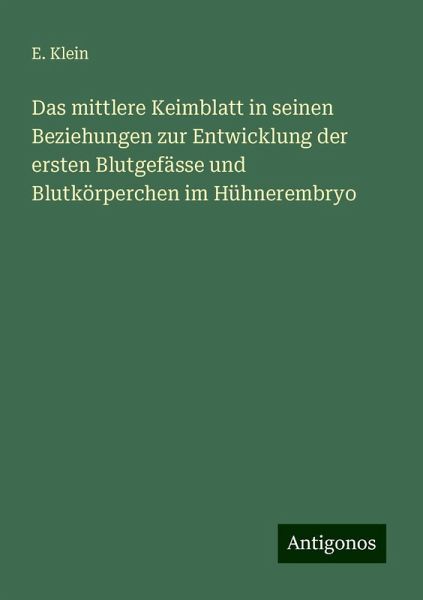 Das mittlere Keimblatt in seinen Beziehungen zur Entwicklung der ersten Blutgefässe und Blutkörperchen im Hühnerembryo - Klein, E.