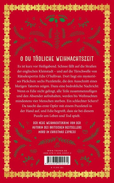 »Mindestens vier Menschen werden bis Heiligabend um Mitternacht den Tod gefunden haben, wenn Sie es nicht schaffen, alle Teile zusammenzusetzen und mich aufzuhalten.« Mit diesen Worten auf einer Weihnachtskarte ist die besinnliche Adventszeit für die Rentnerin undWeihnachtshasserin Edie O'Sullivan vorüber. Ein unbekannter Absender hat sie geschickt, ebenso wie sechs Puzzleteile, die zusammengelegt den Ausschnitt eines Tatortes ergeben. Entsetzt sucht Edie Rat bei ihrem Großneffen Sean, einem Polizisten. Sie ahnt, dass sie nicht zufällig ausgewählt wurde, schließlich gilt sie als eine der größten Rätselexpertinnen des Landes. Doch da taucht bereits das erste Opfer mit einem Puzzleteil in der Hand auf. Sean will ohne Edie weiterermitteln, aber die alte Dame lässt nicht locker. Unbeirrt puzzelt sie weiter. Je näher sie der Lösung kommt, desto mehr führen die Hinweise in Edies Vergangenheit und zu einem Geheimnis, das sie tief vergraben glaubte.