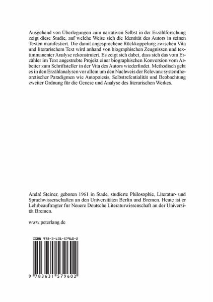 Ausgehend von Überlegungen zum narrativen Selbst in der Erzählforschung zeigt diese Studie, auf welche Weise sich die Identität des Autors in seinen Texten manifestiert. Die damit angesprochene Rückkoppelung zwischen Vita und literarischem Text wird anhand von biographischen Zeugnissen und textimmanenter Analyse rekonstruiert. Es zeigt sich dabei, dass sich das vom Erzähler im Text angestrebte Projekt einer biographischen Konversion vom Arbeiter zum Schriftsteller in der Vita des Autors wiederfindet. Methodisch geht es in den Erzählanalysen vor allem um den Nachweis der Relevanz systemtheoretischer Paradigmen wie Autopoiesis, Selbstrefentialität und Beobachtung zweiter Ordnung für die Genese und Analyse des literarischen Werkes.