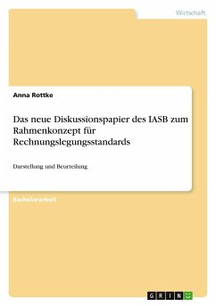 Bachelorarbeit aus dem Jahr 2014 im Fachbereich BWL - Rechnungswesen, Bilanzierung, Steuern, Note: 2,3, Bergische Universität Wuppertal (Wirtschaftswissenschaften), Veranstaltung: Bachelorarbeit, Sprache: Deutsch, Abstract: Die Bachelorarbeit stellt das neue Diskussionspapier "A Review of the Conceptual Framework for Financial Reporting" vor und bewertet es. Dabei wird die grundlegende Frage untersucht, welche Änderungsvorschläge der IASB in diesem Diskussionspapier unterbreitet. Die Beurteilung erfolgt durch die Klärung der Frage, welche Auswirkungen die vom IASB in dem Diskussionspapier unterbreiteten Änderungsvorschläge auf ausgewählte internationale Rechnungslegungsstandards haben. Um diese Fragen zu beantworten, wird zunächst auf die Änderungsvorschläge zu den existierenden Richtlinien des aktuellen Rahmenkonzepts eingegangen und dann auf die Auswirkungen auf die jeweiligen Standards. Dabei wird als erstes die jeweilige Ausgangssituation und dann der Änderungsvorschlag durch den IASB dargestellt. Danach werden mögliche Auswirkungen auf die Standards besprochen. Dabei wird auf die Themen Vermögenswert- und Schulddefinition, Ansatz von Vermögensgegenständen sowie den Eigenkapitalbegriff eingegangen und welche IAS (Standards) von diesen möglichen Änderungen betroffen wären. Die Arbeit greift den Aufbau des Diskussionspapiers insofern auf, als dass der Hauptteil der Arbeit zweigeteilt ist. Der erste Teil beschäftigt sich mit unterbreiteten Änderungsvorschlägen zu bereits existierenden Richtlinien des aktuellen Rahmenkonzepts und somit zu bereits angewandten Standards. Der zweite Teil stellt die Entwicklung zusätzlicher Richtlinien für das neue überarbeitete Rahmenkonzept und somit auch Entwicklung neuer Standards dar. Hier wird auf die Bewertung, Ausweis und Anhangangaben sowie der Abgrenzung von GuV und OCI eingegangen. Den Schluss bildet eine Zusammenfassung der wichtigsten Ergebnisse.