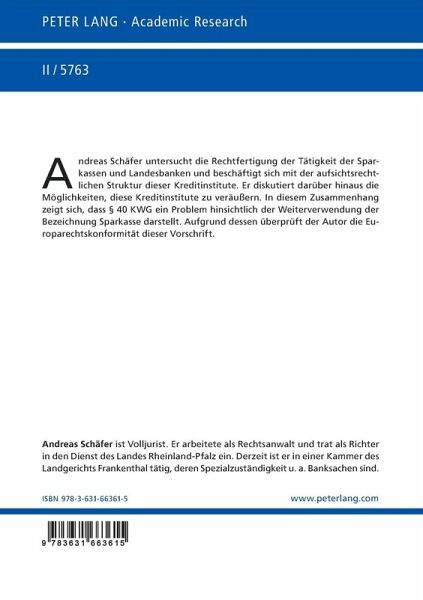 Andreas Schäfer untersucht die Rechtfertigung der Tätigkeit der Sparkassen und Landesbanken und beschäftigt sich mit der aufsichtsrechtlichen Struktur dieser Kreditinstitute. Er diskutiert darüber hinaus die Möglichkeiten, diese Kreditinstitute zu veräußern. In diesem Zusammenhang zeigt sich, dass