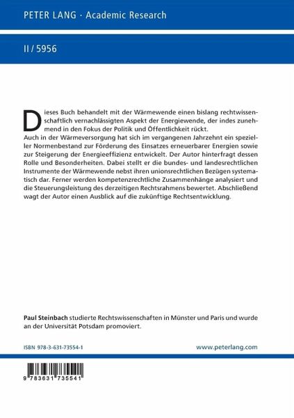 Dieses Buch behandelt mit der Wärmewende einen bislang rechtwissenschaftlich vernachlässigten Aspekt der Energiewende, der indes zunehmend in den Fokus der Politik und Öffentlichkeit rückt.