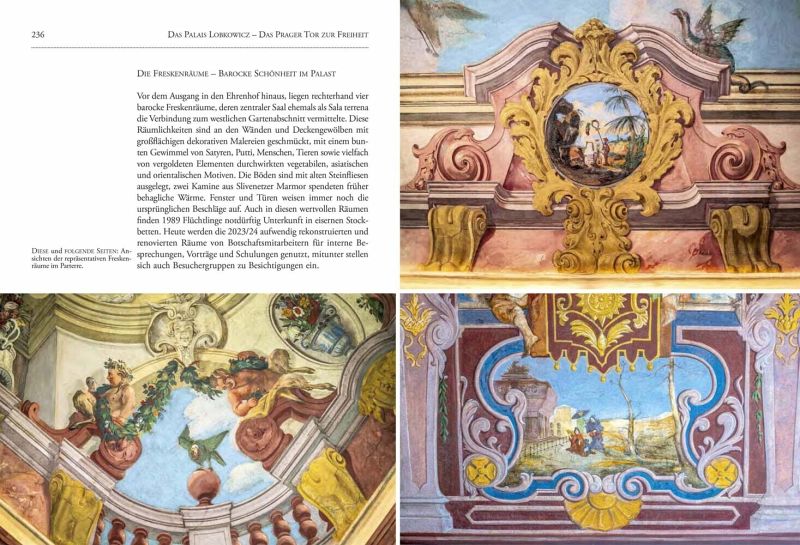 Überraschend ist die historische Rolle dieses barocken Kleinods nicht. Seit mehr als 300 Jahren herrscht ein buntes Treiben in dem prächtigen Palais auf der Prager Kleinseite: Grafen und Fürsten wandeln durch die Hallen, Ludwig van Beethoven denken wir uns als Gast im Haus, Kaiser Franz Josef steigt die Treppe hinauf zu festlichem Empfang und auch der Präsident der jungen Tschechoslowakei T. G. Masaryk wird in dem Palast zum Bankett erwartet. Längst ist das Gemäuer im Besitz des Staates, als sich hier nach Unter-zeichnung des "Prager Vertrages" anno 1974 deutsche Diplomaten niederlassen. Argwöhnisch vom kommunistischen Geheimdienst beäugt, bewährt sich die Mission als Stätte der Freiheit für Regimekritiker und Dissidenten. Im Abendrot des Kalten Krieges richten sich dann die Fernsehkameras der Welt auf die von tausenden Flüchtlingen belagerte Botschaft - in den denkwürdigen Tagen von 1989 verbinden mit dem Palast unzählige Deutsche aus der DDR, aber auch Tschechen, die Hoffnung auf ein besseres Morgen.
