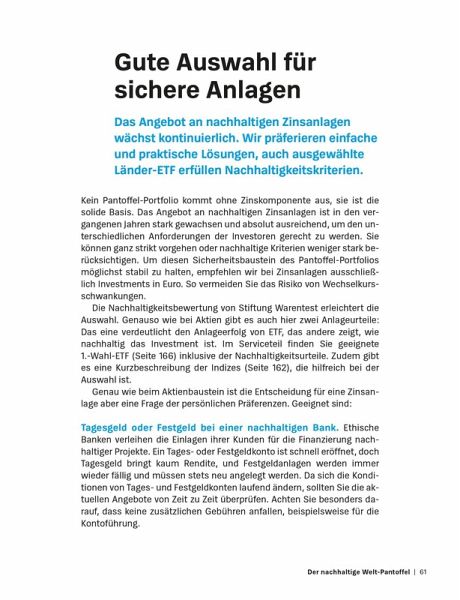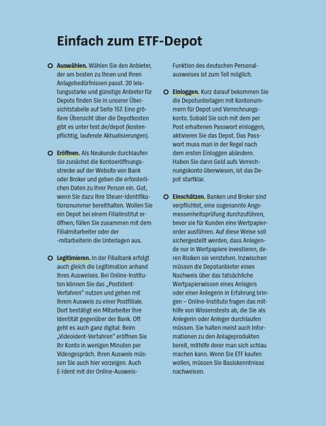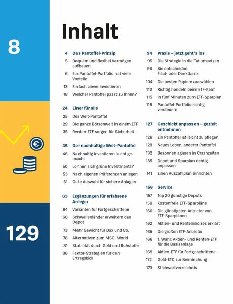 Beide Bausteine lassen sich flexibel kombinieren - vom vorsichtigen Anleger bis zum mutigen Investor. Das Buch liefert konkrete Empfehlungen für den Kauf von ETFs, erklärt die besten ETF-Strategien, die Dividendenstrategie und wie man Vermögen durch Aktien-Sparpläne aufbaut.