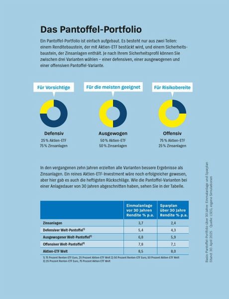 Das Pantoffel-Portfolio ist der ideale Ratgeber für ETF-Einsteiger 2025 und alle, die mit ETFs und Aktien Geld verdienen möchten. Entwickelt von der Stiftung Warentest, zeigt es Laien einen einfachen, sicheren Weg in die Welt der Börse und des Vermögensaufbaus.