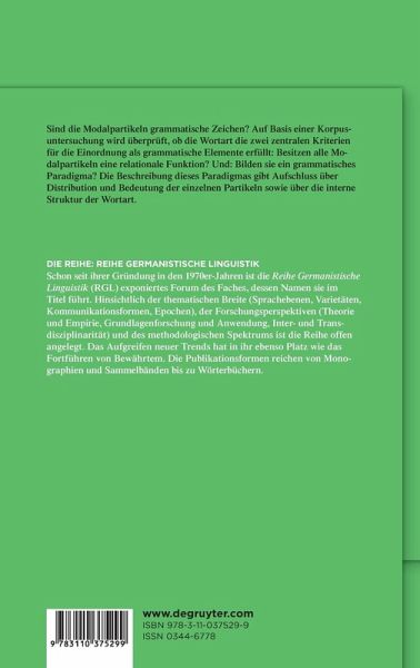 Are modal particles grammatical signs? This study investigates whether the modal particle meets the two key criteria forclassifying itas a grammatical element. Do all modal particles have a relational function? And do they constitute a grammatical paradigm? Describing this paradigm lends insight into the distribution and significance of specific particles and the internal structure of this part of speech.