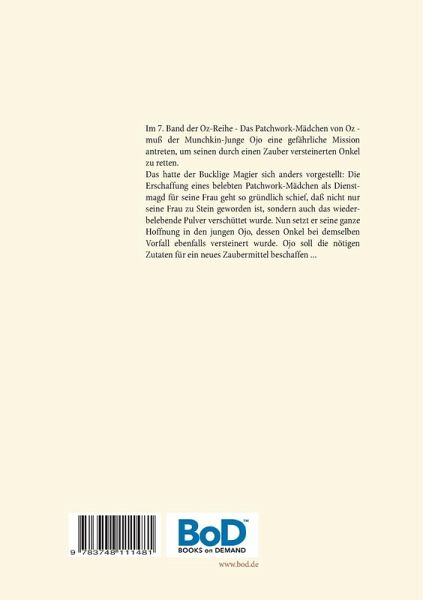 Im 7. Band der Oz-Reihe - Das Patchwork-Mädchen von Oz - muß der Munchkin-Junge Ojo eine gefährliche Mission antreten, um seinen durch einen Zauber versteinerten Onkel zu retten.Das hatte der Bucklige Magier sich anders vorgestellt: Die Erschaffung eines belebten Patchwork-Mädchen als Dienstmagd für seine Frau geht so gründlich schief, daß nicht nur seine Frau zu Stein geworden ist, sondern auch das wiederbelebende Pulver verschüttet wurde. Nun setzt er seine ganze Hoffnung in den jungen Ojo, dessen Onkel bei demselben Vorfall ebenfalls versteinert wurde. Ojo soll die nötigen Zutaten für ein neues Zaubermittel beschaffen. Zu seiner Unterstützung begleiten ihn das Patchwork-Mädchen und eine gläserne Katze. Die Mission ist voller Gefahren, und der kleine Munchkin-Junge, der sein ganzes bisheriges Leben in einem abgeschiedenen Wald verbrachte, muß Einiges über das Leben lernen ... Empfohlenes Alter: 5 bis 10 Jahre. Große Schrift, auch für Leseanfänger geeignet.