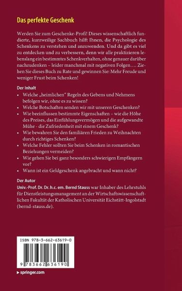 "... Das Buch des deutschen Wirtschaftsforschers Bernd Stauss leistet dabei eine wertvolle Hilfe. Er zeigt: Das perfekte Geschenk ist keine Glückssache. Der Autor erklärt, wie es gelingt, den Beschenkten möglichst viel Freude zu bereiten. Psychologen haben dazu viele Studien gemacht. Diese zeigen unter anderem, dass nicht teure Geschenke am besten ankommen, sondern solche mit einem hohen emotionalen Wert ..." (Gesundheitstipp, Dezember 2021)