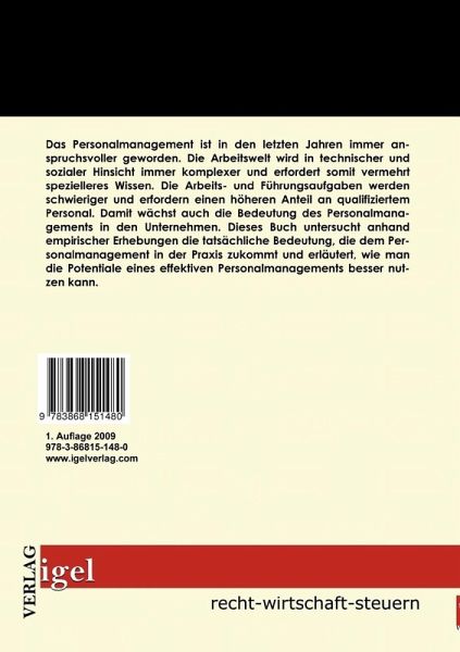Das Personalmanagement ist in den letzten Jahren immer anspruchsvoller geworden. Die Arbeitswelt wird in technischer und sozialer Hinsicht immer komplexer und erfordert somit vermehrt spezielleres Wissen. Die Arbeits- und Führungsaufgaben werden schwieriger und erfordern einen höheren Anteil an qualifiziertem Personal. Damit wächst auch die Bedeutung des Personalmanagements in den Unternehmen. Dieses Buch untersucht anhand empirischer Erhebungen die tatsächliche Bedeutung, die dem Personalmanagement in der Praxis zukommt und erläutert, wie man die Potentiale eines effektiven Personalmanagements besser nutzen kann.