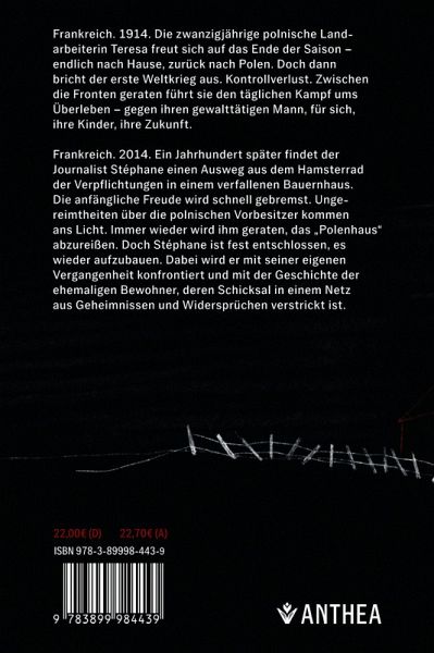 "Das Polenhaus" ist der zweite Roman von Gregor Höppner, der im Anthea Verlag erschienen ist. Höppner erzählt darin auf zwei verschiedenen Ebenen. Während sich der Haupstrang um Stéphane und das Jahr 2014 dreht, gibt es immer wieder längere Einschübe, die ziemlich genau ein Jahrhundert davor einsetzen. In diesem zweiten Strang begleiten die Leserinnen die anfangs 20-jährige polnische Landarbeiterin Teresa, die in Frankreich auf die Rückkehr in die Heimat wartet. Doch wir schreiben das Jahr 1914 und der Erste Weltkrieg steht vor der Tür.
