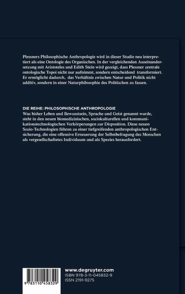 Die Naturphilosophie und die Politische Philosophie werden gemeinhin als Disziplinen aufgefasst, die grundlegend verschiedene Problembereiche zum Gegenstand haben. Die Aporien zu überwinden, welche daraus resultieren, ist die Pointe von Plessners Philosophischer Anthropologie.