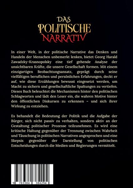 Die Strukturen des religiösen Glaubens finden sich in "politischen Narrativen" wieder. Dabei wird in ihnen scharf unterschieden zwischen denen, die dem jeweiligen Narrativ folgen, und denen, die sich ihm nicht unterwerfen. Letztere sind Feinde und müssen auf irgendeine Weise geschädigt werden: z.B. durch Herabsetzung, Freiheitsentzug, Nicht-zur-Kenntnisnahme ...Dabei werden viele Informationen, die zu dem Grundthema des Narrativs gehören, unterdrückt oder nicht beachtet.