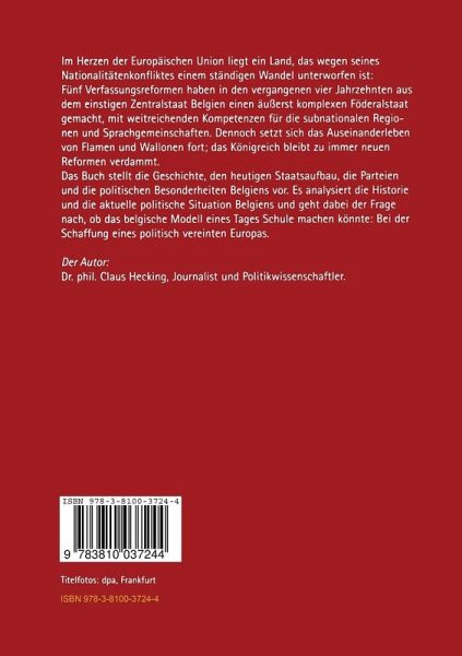 Das Buch stellt die Geschichte, den heutigen Staatsaufbau, die Parteien und die politischen Besonderheiten Belgiens vor. Es analysiert die Historie und die aktuelle politische Situation Belgiens und geht dabei der Frage nach, ob das belgische Modell eines Tages Schule machen könnte: Bei der Schaffung eines politisch vereinten Europas.