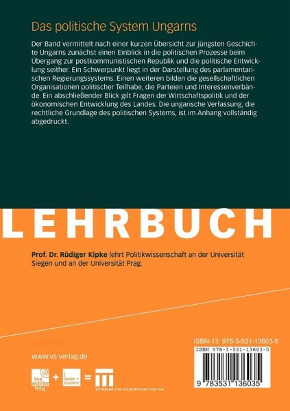 Der Band vermittelt nach einer kurzen Übersicht zur jüngsten Geschichte Ungarns zunächst einen Einblick in die politischen Prozesse beim Übergang zur postkommunistischen Republik und die politische Entwicklung seither. Ein Schwerpunkt liegt in der Darstellung des parlamentarischen Regierungssystems. Einen weiteren bilden die gesellschaftlichen Organisationen politischer Teilhabe, die Parteien und Interessenverbände. Ein abschließender Blick gilt Fragen der Wirtschaftspolitik und derökonomischen Entwicklung des Landes. Die ungarische Verfassung, die rechtliche Grundlage des politischen Systems, ist im Anhang vollständig abgedruckt.