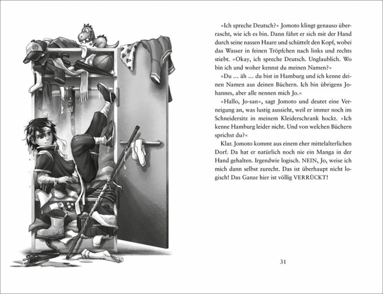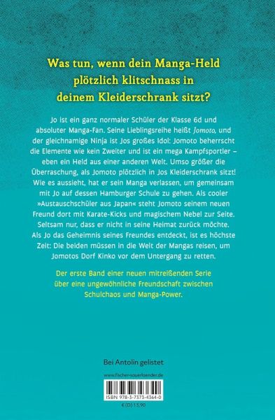 Jo ist ein ganz normaler Schüler der Klasse 6 d und absoluter Manga-Fan. Seine Lieblingsreihe heißt Jomoto und der gleichnamige Ninja ist Jos großes Idol: Jomoto beherrscht die Elemente wie kein Zweiter und ist ein mega Kampfsportler - eben ein Held aus einer anderen Welt. Umso größer die Überraschung, als Jomoto plötzlich in Jos Kleiderschrank sitzt! Wie es aussieht, hat er sein Manga verlassen, um gemeinsam mit Jo auf dessen Hamburger Schule zu gehen. Als cooler »Austauschschüler aus Japan« steht Jomoto seinem neuen Freund dort mit Karate-Kicks und magischem Nebel zur Seite. Seltsam nur, dass er nicht in seine Heimat zurück möchte. Als Jo das Geheimnis seines Freundes entdeckt, ist es höchste Zeit: Die beiden müssen in die Welt der Mangas reisen, um Jomotos Dorf Kinko vor dem Untergang zu retten.