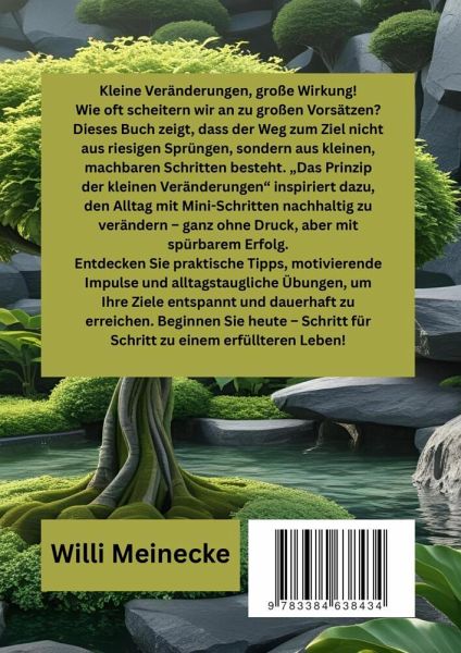 Das Buch "Das Prinzip der kleinen Veränderungen: Schritt für Schritt zum Ziel" zeigt, wie winzige, konsequente Mini-Schritte im Alltag nachhaltige Veränderungen bewirken können. Es vermittelt, dass große Erfolge nicht durch radikale Umbrüche, sondern durch kleine, machbare Gewohnheiten entstehen, die sich im Laufe der Zeit zu bedeutenden Fortschritten summieren. Dabei geht es um praktische Inspiration und alltagstaugliche Methoden, um Ziele ohne Überforderung zu erreichen und dauerhaft im Leben zu verankern. Das Buch verbindet wissenschaftlich fundierte Erkenntnisse mit motivierenden Beispielen und zeigt, wie man durch bewusste Veränderung der eigenen Identität und Umgebung neue Gewohnheiten etabliert und so Schritt für Schritt ein erfüllteres Leben gestaltet.