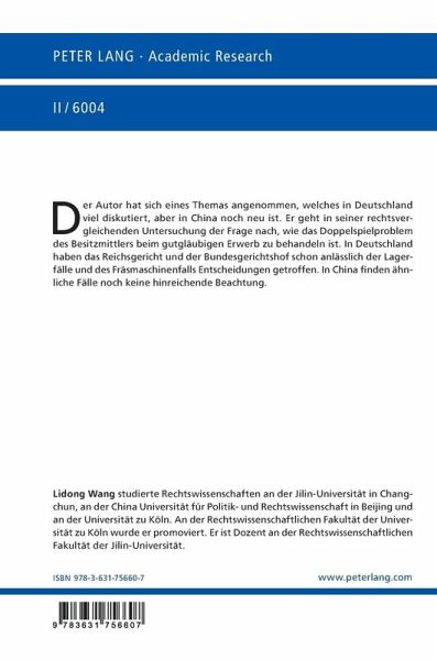 Der Autor hat sich eines Themas angenommen, welches in Deutschland viel diskutiert, aber in China noch neu ist. Er geht in seiner rechtsvergleichenden Untersuchung der Frage nach, wie das Doppelspielproblem des Besitzmittlers beim gutgläubigen Erwerb zu behandeln ist. In Deutschland haben das Reichsgericht und der Bundesgerichtshof schon anlässlich der Lagerfälle und des Fräsmaschinenfalls Entscheidungen getroffen. In China finden ähnliche Fälle noch keine hinreichende Beachtung.