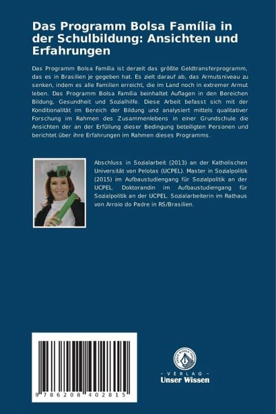 Das Programm Bolsa Família ist derzeit das größte Geldtransferprogramm, das es in Brasilien je gegeben hat. Es zielt darauf ab, das Armutsniveau zu senken, indem es alle Familien erreicht, die im Land noch in extremer Armut leben. Das Programm Bolsa Família beinhaltet Auflagen in den Bereichen Bildung, Gesundheit und Sozialhilfe. Diese Arbeit befasst sich mit der Konditionalität im Bereich der Bildung und analysiert mittels qualitativer Forschung im Rahmen des Zusammenlebens in einer Grundschule die Ansichten der an der Erfüllung dieser Bedingung beteiligten Personen und berichtet über ihre Erfahrungen im Rahmen dieses Programms.