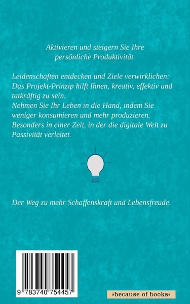 Aktivieren und steigern Sie Ihre persönliche Produktivität. Leidenschaften entdecken und Ziele verwirklichen: Das Projekt-Prinzip hilft Ihnen, kreativ, effektiv und tatkräftig zu sein. Nehmen Sie Ihr Leben in die Hand, indem Sie weniger konsumieren und mehr produzieren. Besonders in einer Zeit, in der die digitale Welt zu Passivität verleitet.Der Weg zu mehr Schaffenskraft und Lebensfreude.