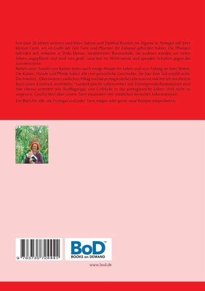 Seit über 20 Jahren wohnen und leben Sabine und Dietfrid Kranich in der Algarve in Portugal auf ihrer kleinen Farm, wo im Laufe der Zeit Tiere und Pflanzen ihr Zuhause gefunden haben. Die Pflanzen befinden sich teilweise in Didis kleiner, mediterraner Baumschule, die anderen wurden vor vielen Jahren angepflanzt und sind nun groß, rauschen im Winterwind und spenden Schatten gegen die Sommersonne. Neben einer Anzahl von Katzen teilen auch einige Hunde ihr Leben und von Anfang an zwei Stuten. Die Katzen, Hunde und Pferde haben alle eine persönliche Geschichte, die hier zum Teil erzählt wird. Die Autorin: "Über unseren südlichen Alltag und die portugiesische Lebensweise möchte ich mit diesem Buch einen Eindruck vermitteln." Landestypische Lebensmittel mit Hintergrundinformationen sind hier ebenso vertreten wie Ausflugstipps und Einblicke in das portugiesische Leben. Und nicht zu vergessen, Geschichten über unsere Tiere zusammen mit nützlichen tierischen Informationen. Ein Buch für alle, die Portugal und/oder Tiere mögen oder gerne neue Rezepte ausprobieren.