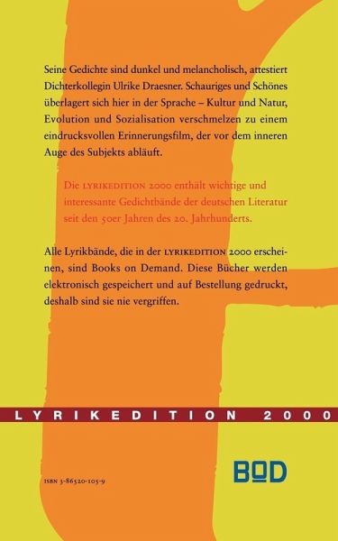 Seine Gedichte sind dunkel und melancholisch, attestiert Dichterkollegin Ulrike Draesner. Schauriges und Schönes überlagert sich hier in der Sprache - Kultur und Natur, Evolution und Sozialisation verschmelzen zu einem eindrucksvollen Erinnerungsfilm, der vor dem inneren Auge des Subjekts abläuft.