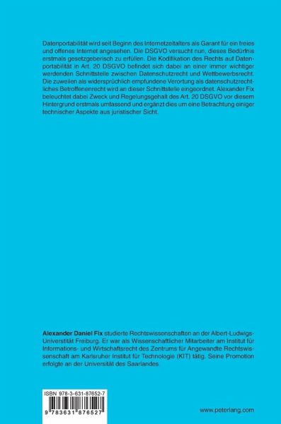 Datenportabilität wird seit Beginn des Internetzeitalters als Garant für ein freies und offenes Internet angesehen. Die DSGVO versucht nun, dieses Bedürfnis erstmals gesetzgeberisch zu erfüllen. Die Kodifikation des Rechts auf Datenportabilität in Art. 20 DSGVO befindet sich dabei an einer immer wichtiger werdenden Schnittstelle zwischen Datenschutzrecht und Wettbewerbsrecht. Die zuweilen als widersprüchlich empfundene Verortung als datenschutzrechtliches Betroffenenrecht wird an dieser Schnittstelle eingeordnet. Alexander Fix beleuchtet dabei Zweck und Regelungsgehalt des Art. 20 DSGVO vor diesem Hintergrund erstmals umfassend und ergänzt dies um eine Betrachtung einiger technischer Aspekte aus juristischer Sicht.