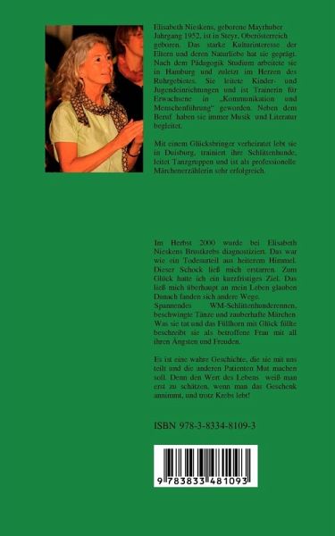 Spannend schreibt die Autorin von der Weltmeisterschaft mit ihren Schlittenhunden, vom Tanz, vom Märchenweg und wie sie damit ihre lebensbedrohliche Krise überwunden hat. Zutiefst bewegend teilt Elisabeth Niekens von der Krebsdiagnose angefangen, ihre Seelenempfindungen und Träume mit. Sie dokumentiert 6Jahre ihres Weges zur Genesung. Das Buch mit 18 Fotos ist eine Ode an Menschen, die in ihrem Kampf gegen den Krebs, die Hoffnung nicht aufgeben, und der Gesunde wird angeregt, auf die eigenen kreativen Kräfte der Lebensführung zu achten. Einige Tagebucheintragungen sind aus dem frei gewählten Exil einer österreichischen Berghütte und beeindrucken durch den Mut der starken Frau, aufzustehen, und durch die Demut, das nicht sich selbst zuzuschreiben sondern anderen Menschen und dem Anderen, der unser Leben trägt- durch Dick und Dünn.