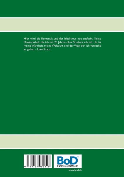Hier wird die Romantik und der Idealismus neu entfacht. Meine Doktorarbeit, die ich mit 20 Jahren ohne Studium schrieb... Es ist meine Wahrheit, meine Weltsicht und der Weg, den ich versuche zu gehen. - Uwe Kraus