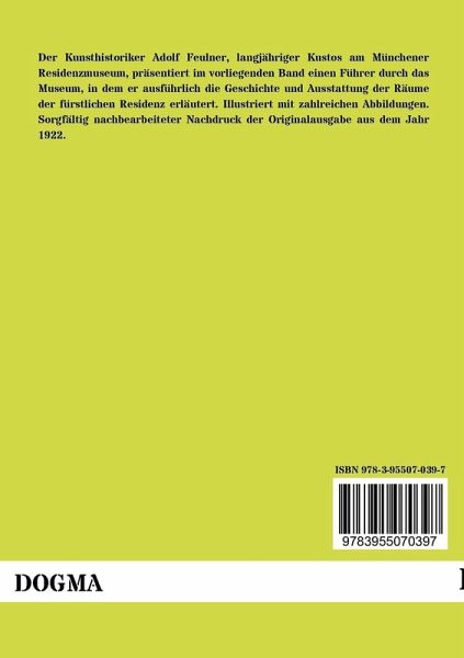 Der Kunsthistoriker Adolf Feulner, langjähriger Kustos am Münchener Residenzmuseum, präsentiert im vorliegenden Band einen Führer durch das Museum, in dem er ausführlich die Geschichte und Ausstattung der Räume der fürstlichen Residenz erläutert. Illustriert mit zahlreichen Abbildungen. Sorgfältig nachbearbeiteter Nachdruck der Originalausgabe aus dem Jahr 1922.