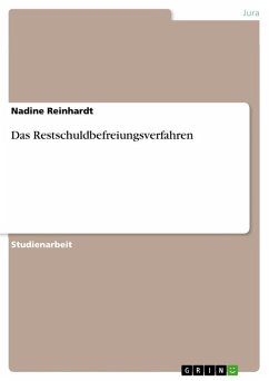 Studienarbeit aus dem Jahr 2020 im Fachbereich Jura - Zivilrecht / BGB AT / Schuldrecht / Sachenrecht, Note: 14,0, Fachhochschule der Deutschen Bundesbank - Schloss Hachenburg, Sprache: Deutsch, Abstract: Ziel dieser Seminararbeit ist die Darstellung des Ablaufs des gesetzlichen Restschuldbefreiungsverfahrens während der einzelnen Phasen und das Aufzeigen der Auswirkungen auf den Schuldner. Im Speziellen sind die Fragen über die zu erfüllenden Voraussetzungen, um die Möglichkeit zur Restschuldbefreiung zu erhalten und die Obliegenheiten, die den Schuldner in der Wohlverhaltensphase betreffen, zu klären. Weiterhin werden die Einflussnahme des Schuldners sowie die Konsequenzen des Schuldenerlasses beleuchtet. Die Vorgehensweise der Ausarbeitung orientiert sich dabei an den Prozessschritten des Restschuldbefreiungsverfahrens gemäß InsO. Insbesondere ist der Gesetzesentwurf vom 1. Juli 2020 und die damit einhergehenden Änderungen Teil der Arbeit.