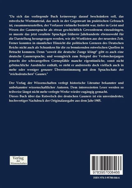 Dieses Buch über das Rotwelsch des deutschen Gauners ist ein unveränderter, hochwertiger Nachdruck der Originalausgabe aus dem Jahr 1905.