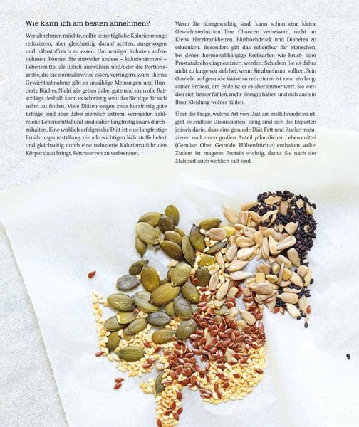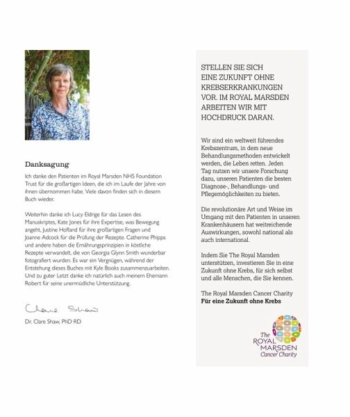 Das Anti-Krebs-Kochbuch bietet gesunde Rezepte für die Zeit während und nach einer Krebsbehandlung! Die Diagnose Krebs verändert das Leben grundlegend und bringt viele Erschwernisse für Betroffene und ihre Angehörigen mit sich. Die Herausforderungen einer Krebstherapie umfassen Veränderungen des Körpergewichts, des Appetits sowie der Fähigkeit zu schmecken und zu schlucken. Phasen der Übelkeit und Veränderungen in der Funktionsweise des Verdauungssystems und des Sättigungsgefühls sind ebenfalls häufig.Wie reagiert man darauf?Welche Gerichte sind geeignet?Wie sieht eine gesunde Ernährung während der Krebstherapie aus?Was kann man noch kochen? Und welche Lebensmittel wirken sich vielleicht sogar positiv auf den Genesungsprozess aus oder beugen eine Erkrankung präventiv vor?Das Royal Marsden Anti-Krebs-Kochbuch bietet hilfreiche Ratschläge und präsentiert 150 köstliche und gesunde Rezepte, um das Kochen einfach und angenehm zu gestalten. Alle Rezepte wurden von Dr. Clare Shaw geprüft und analysiert. Sie ist die leitende Ernährungsberaterin im Royal Marsden, einem weltweit führenden Krebszentrum. Die Rezepte im Anti-Krebs-Kochbuch sind auch für Familienmitglieder und Freunde geeignet, sodass Sie nicht zusätzlich kochen müssen und somit Stress, Zeit und Geld sparen. Alle Rezepte sind für mehrere Portionen angelegt und enthalten Angaben zum Energie, Protein, Fett- Kohlehydrat und Ballaststoff-Gehalt. In einer übersichtlichen Tabelle kann man die Gerichte je nach persönlicher Schwierigkeit beim Essen (Appetitlosigkeit, Geschmacksveränderung, Übelkeit, wunde Mundschleimhaut, trockener Mund, kalorienreich oder kalorienarm) auswählen. Ob vorbeugend, während oder nach der Therapie - je gesünder die Ernährung, desto besser sind die Aussichten auf ein gutes Leben nach und mit der Krankheit. Sowohl Menschen, die aktiv vorbeugen wollen, als auch an Krebs Erkrankte, die ihre Behandlung auf natürliche Weise unterstützen möchten, finden in diesem Buch wertvolle Orientierung. Fazit: Ein wichtiges Kochbuch für alle Krebskranken und Leute, die es nicht werden wollen. Mit vielen sinnvollen Erklärungen, Ernährungstipps und einer Menge toller Rezepte und mit vielen ansprechenden Food-Fotos!